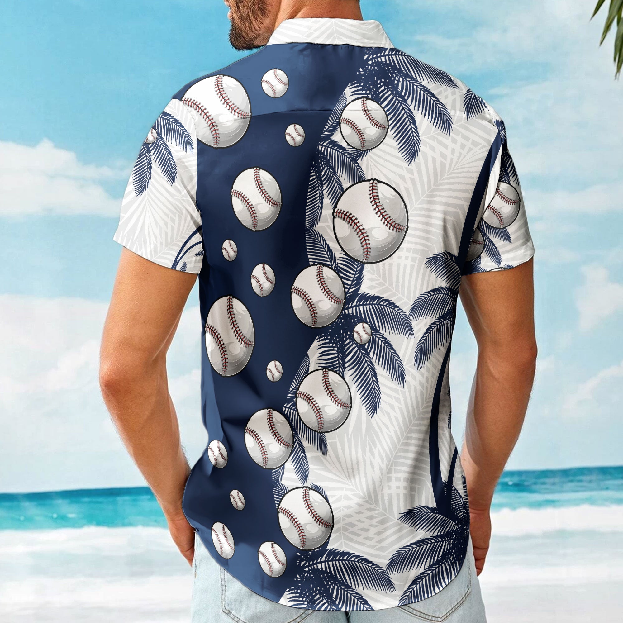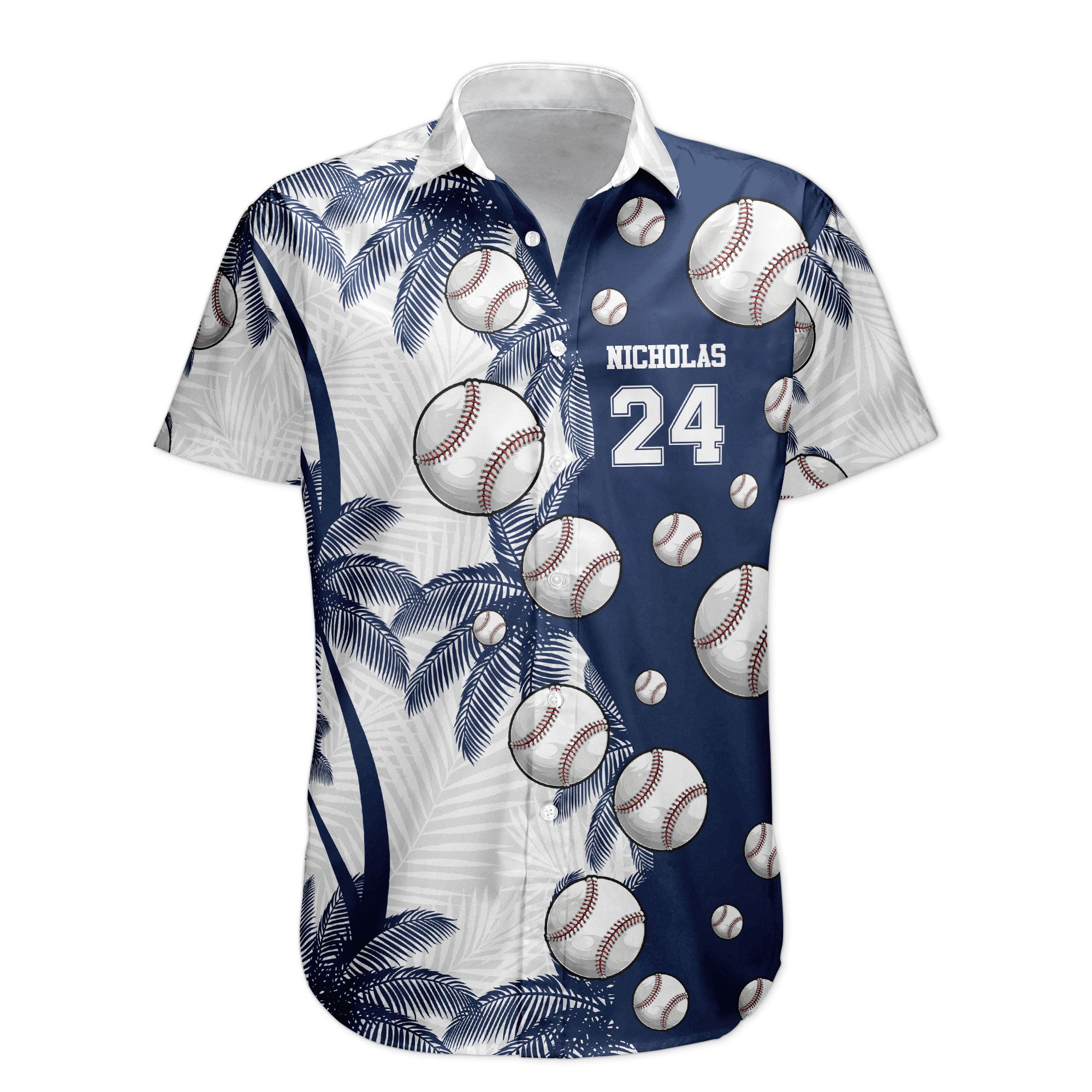 This stylish Hawaiian shirt is the perfect gift for baseball lovers! Featuring a unique design with a mix of tropical palm leaves and baseball patterns, this shirt combines a sporty vibe with a beachy, relaxed feel. The bold navy and white color scheme, paired with the name and number, adds a personalized touch for fans or players alike.