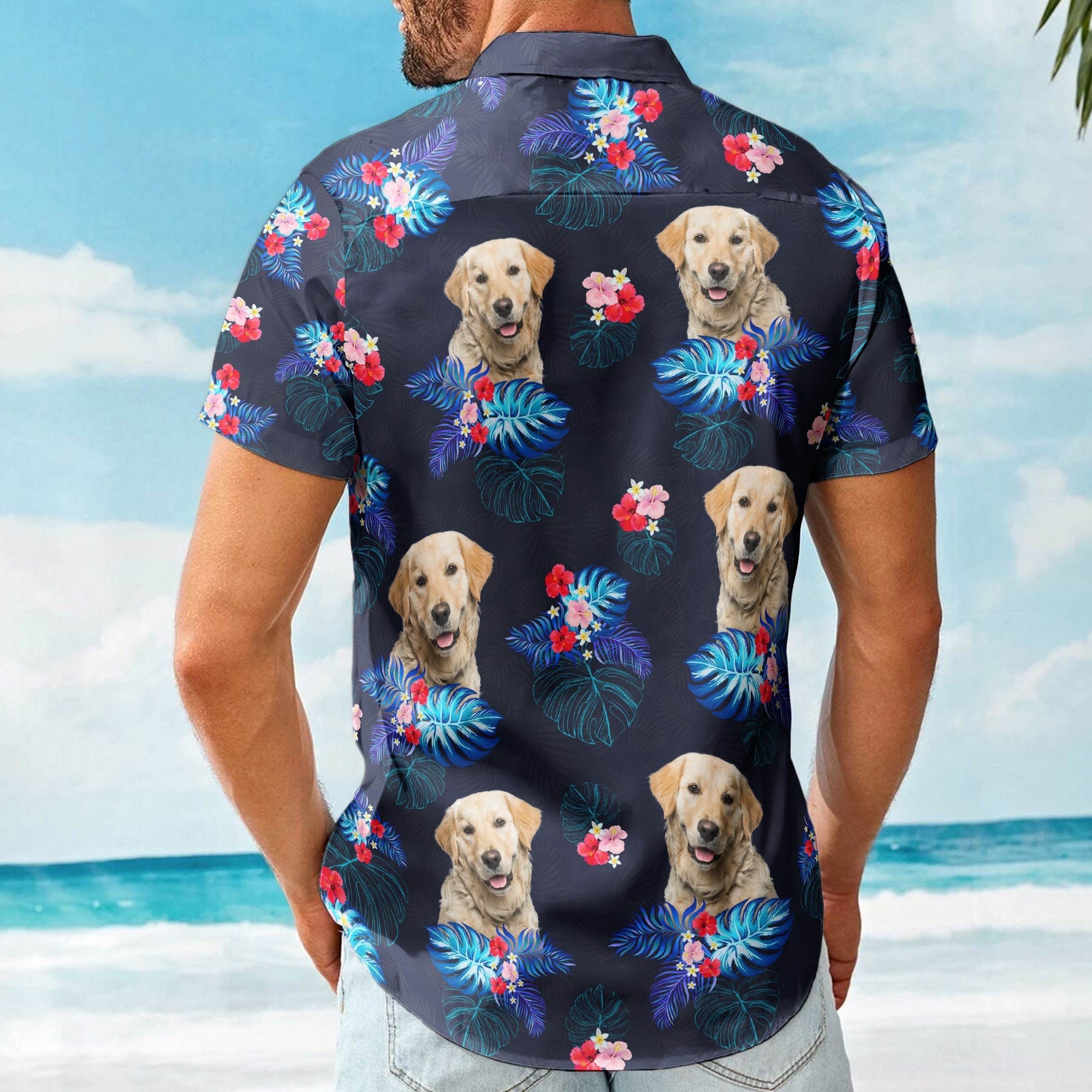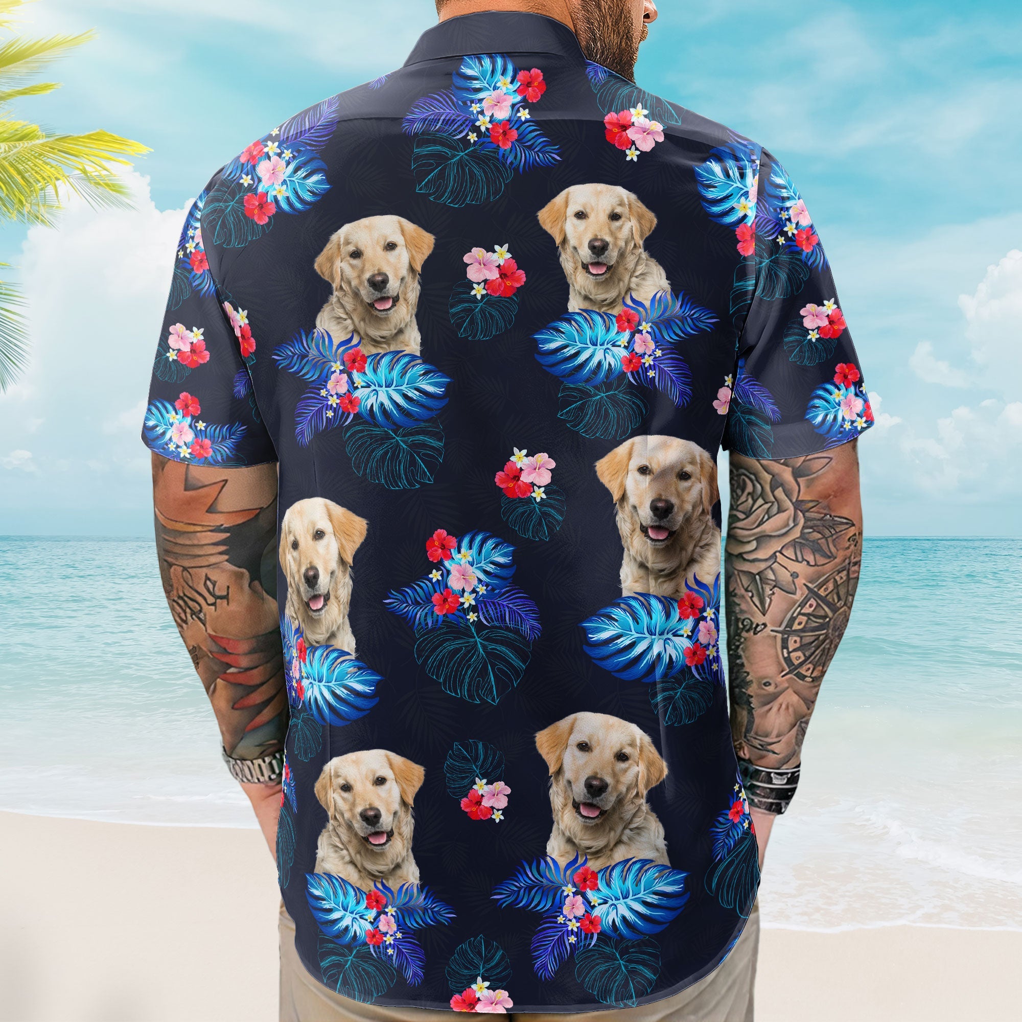 Ideal for gifting, the Personalized Photo Aloha Shirt is a thoughtful and humorous present for your boyfriend, husband, dad, grandpa, boss, coworker, papa, or any beloved men, women in your life. The shirt is adorned with beach fruits, flowers, and playful elements, making it a one-of-a-kind statement piece.