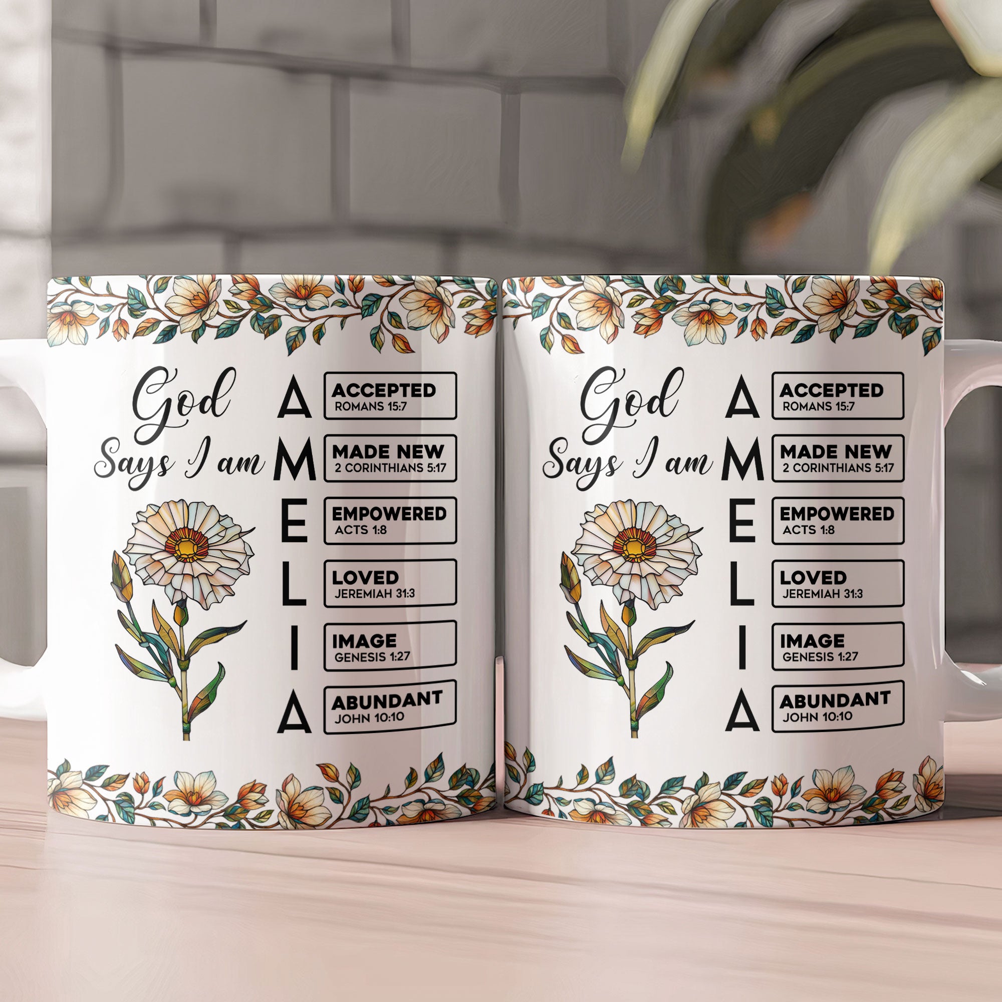 Celebrate the quintessence of faith and love with our uniquely designed mug, the God Says I Am Name Letter In Bible With Stained Glass Birth Flower. This personalized mug, highlighting the bonding and resemblance between Christians, makes an ideal self-gift or a delightful surprise gift for your cherished daughter. With its beautiful design and inspiring message, this mug reminds us daily of our faith, values and devotion. Perfect for Christmas, birthdays, anniversaries, or any special occasion, this mug is more than just a functional item; it’s a daily inspiration.