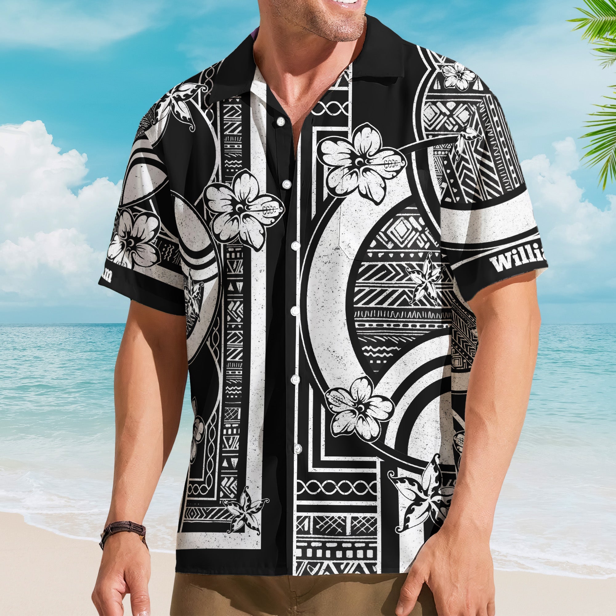 Introducing our custom Hawaiian shirts, a sartorial masterpiece that blends traditional charm with a touch of modern customization. Adorned with the distinctive kapa pattern of Hawaii and vibrant tropical motifs, this shirt captures the essence of the islands in every stitch. What sets it apart is the opportunity to make it uniquely yours—customize it with a name, creating a personalized garment that reflects individual style.