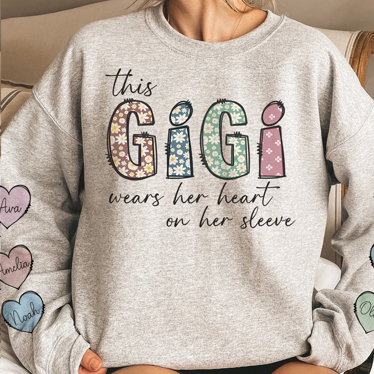 This Mama Wear Her Heart On Her Sleeve – Up To 20 Kids – Personalized Sweatshirt